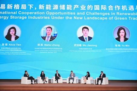 在接下来主题为“新能源储能产业的国际合作机遇与挑战”的圆桌对话中,新能源国际投资联盟副理事长王进,英国48家集团技术与创新总监陈薇,SGS可再生与先进能源中国区总监郑凯,中银证券首席分析师武佳雄,晶澳太阳能全球公共事务中心总裁喻敏,金顶集团副总经理、新工绿氢董事长魏飞等嘉宾,从技术创新、标准互认、金融服务、市场开拓等维度展开深度交流,凝聚行业发展共识。