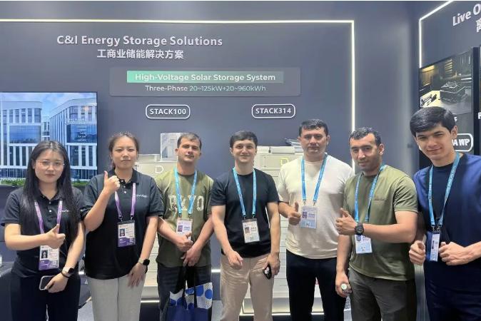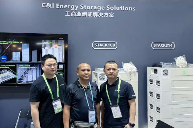 旗舰产品STACK314成为现场焦点。产品采用314Ah电芯,支持12簇并联,容量最高达2.89MWh;盲插堆叠设计提升安装效率,内置气溶胶灭火装置实现5秒级安全响应。结合风冷系统与智能EMS,可帮助用户实现削峰填谷与需量管理,显著优化用能成本,契合亚非拉市场的核心需求。