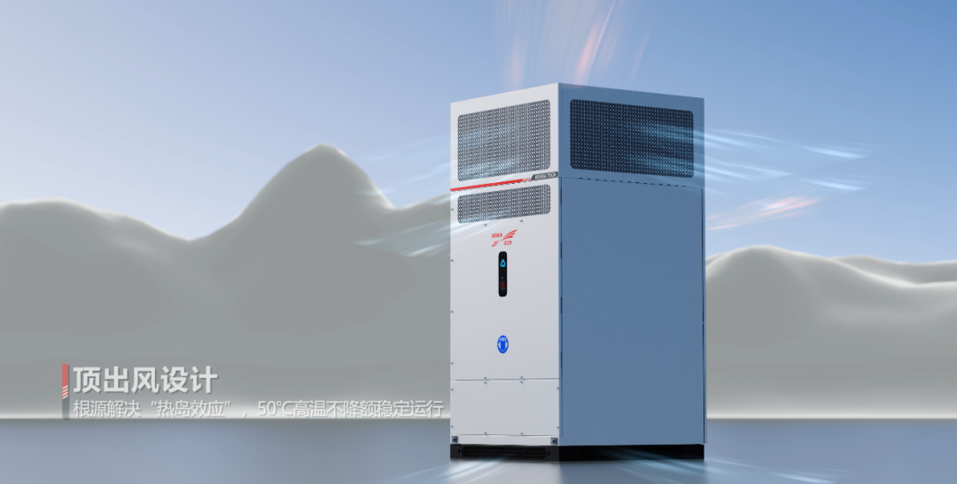 本次发布的3.15MW/3.5MW系列液冷储能变流器,是科华数能第二代液冷技术的集大成之作,相比第一代液冷与传统风冷方案,实现了散热效率、功率密度、设备可靠性的全面跃升。其创新采用液冷+顶出风双重散热架构,从设备级到场站级全方位解决高温与热岛效应难题,打破传统散热模式的局限。对比传统风冷产品,该系列产品的IGBT满载温度可降低10-16℃,功率模组寿命直接提升25%; PCS采用顶出风散热,热风不会再倒吸回进风口,避免了热气回流的问题。创新的散热设计,让机器寿命提升50%。