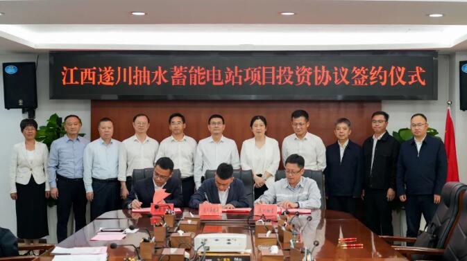 仪式上,双方签订遂川抽蓄项目投资合作协议,并就遂川抽蓄项目推进情况进行交流发言;遂川抽蓄、赣能智慧与遂川县政府签订遂川综合能源项目战略合作协议。